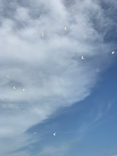 Thousand of birds soar above the lush, green , island , majestically. They fly in continuous circles tirelessly circles tirelessly and easily . These birds own the island. They are seen all over the the island, flying , skipping, hopping, trotting or striding from the dense vegetation to the white sandy beaches.